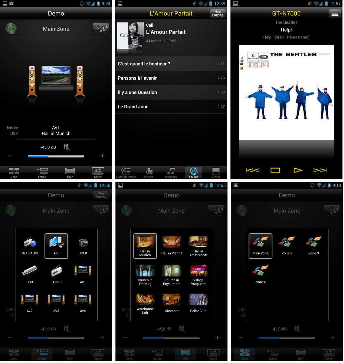 Pour assister l’utilisateur dans ces opérations de lecture, Yamaha propose le téléchargement gratuit d’une application pour iOS et Android, nommée Yamaha AV Controller. Celle-ci permet de recenser les musiques partagées sur un réseau domestique (ordinateurs, NAS, smartphones, etc.) et de les envoyer à l’amplificateur pour lecture instantanée. La version Android permet même de streamer les fichiers audio FLAC HD vers l’amplificateur qui les décode instantanément. L’écoute des radios Internet est évidemment possible de la même manière. L’intégration du protocole AirPlay permet de lire directement la musique depuis iTunes (PC ou Mac) ainsi que depuis un iPhone, un iPod ou un iPad. L’application Yamaha AV Controller donne accès aux réglages avancés de l’amplificateur, comme la sélection des effets surround, la gestion du caisson de basses ou l’activation du mode Pure Direct, par exemple.
